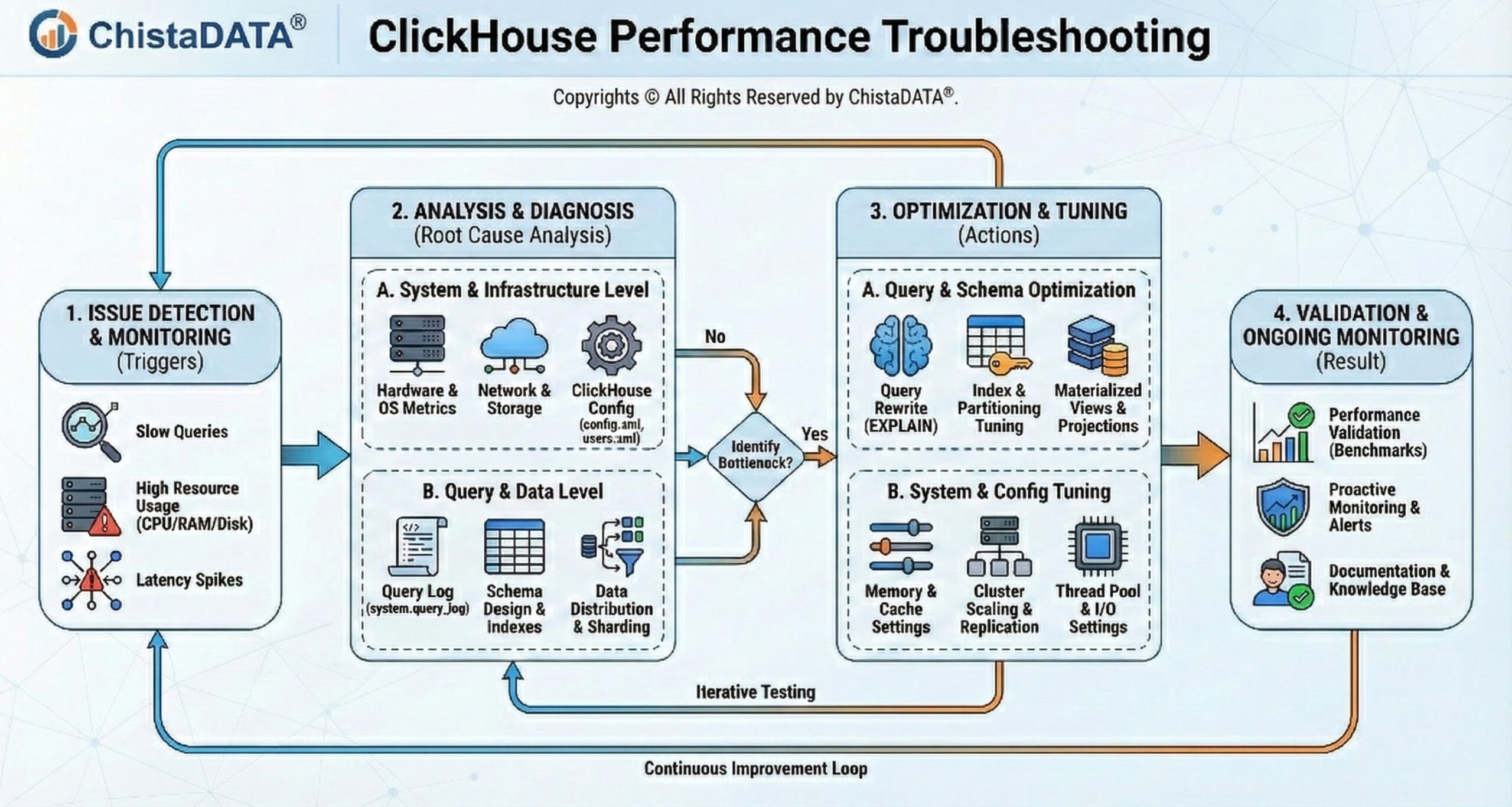 - ClickHouse-specific expertise: Unlike generic database platforms, ChistaDATA is built by engineers who have deep experience with ClickHouse internals.